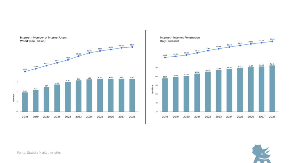 L’avevi mai visto questo grafico? Questo qui sotto! Se non lo conoscevi, te lo mostriamo! È un grafico che dice negli ultimi due anni il numero di persone online è rimasto pressoché invariato, e che non crescerà nei prossimi.